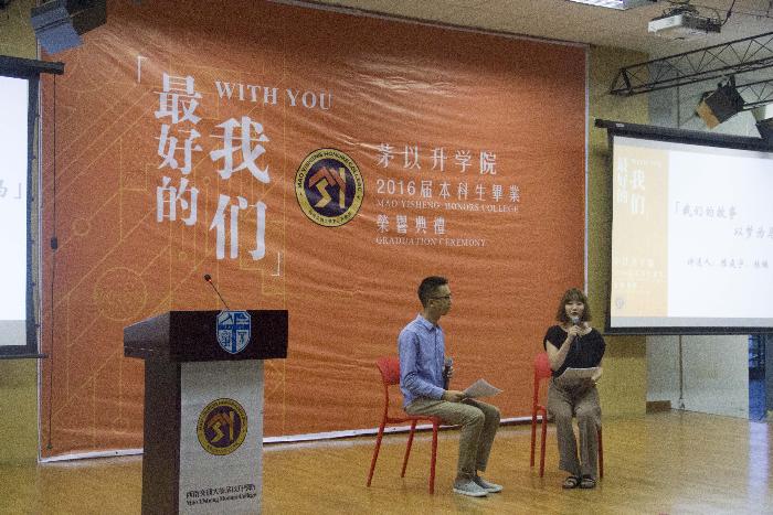 灯光暗,伴着悠扬而深沉的钢琴曲Kiss the Rain,茅院2012级4班的陈庭宇、桂姝缓缓走上舞台,以青春为名,将这四年的青春时光娓娓道来。曲终,典礼主持中文成人网