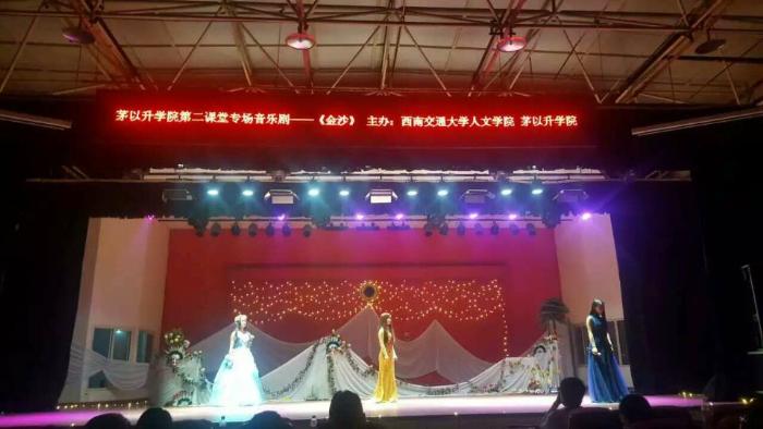 携手人文学院联袂打造的音乐剧《金沙》在一食堂三楼的礼堂内拉开了帷幕。