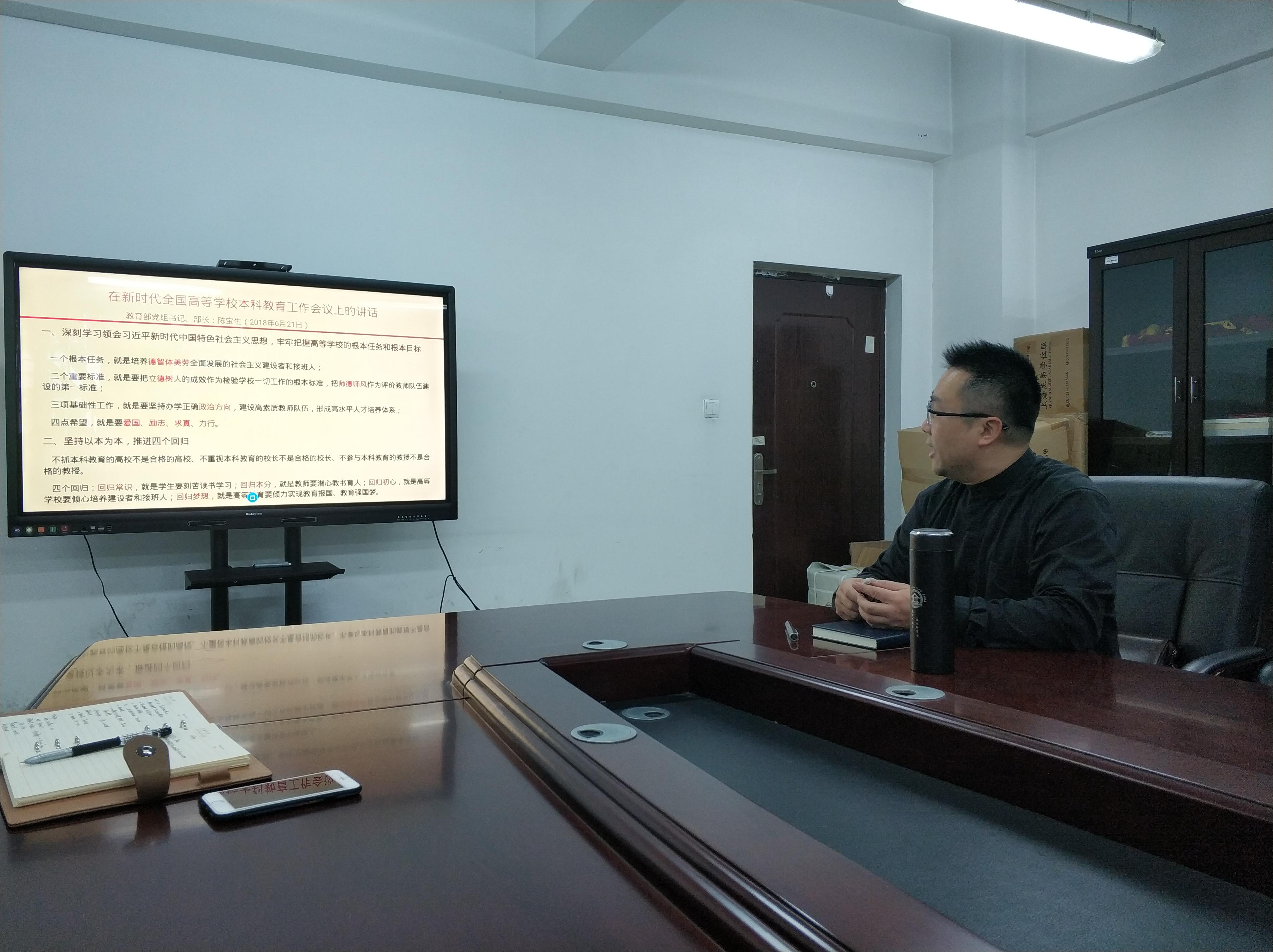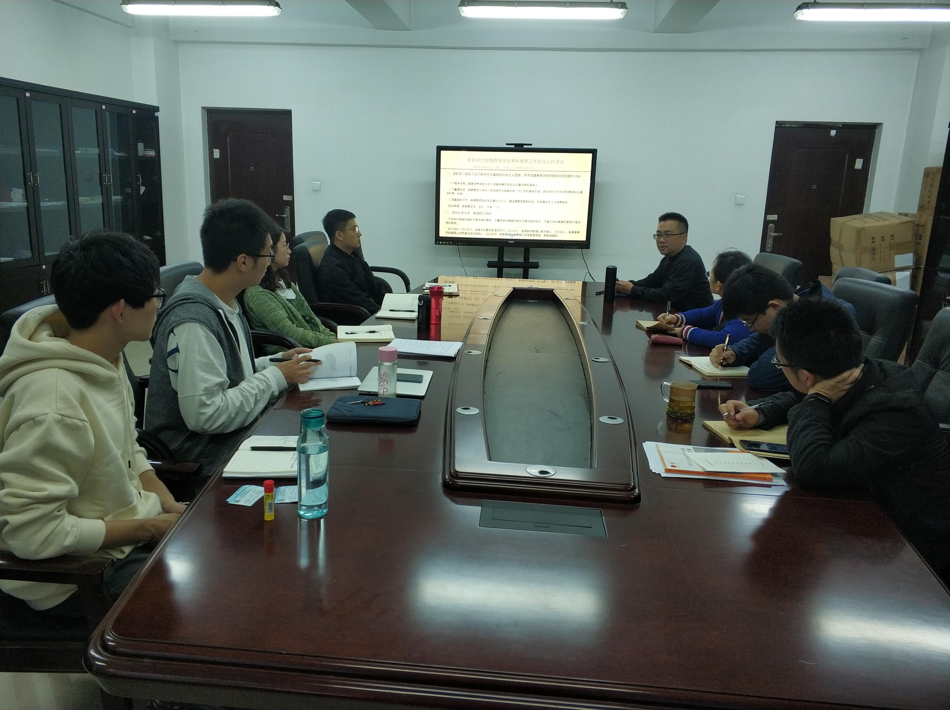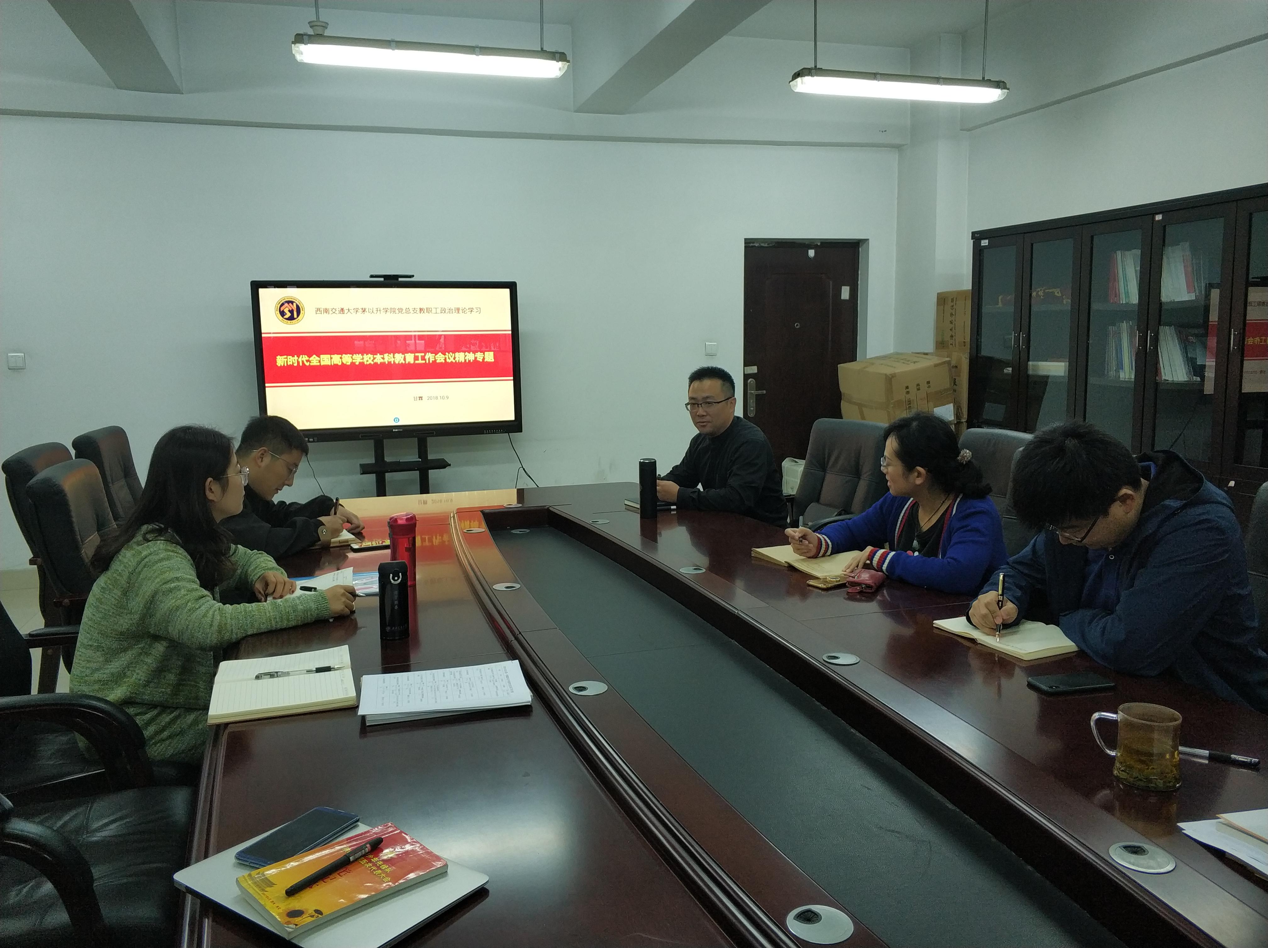 党总支在X1122会议室召开了2018年第八次教职工理论学习会议,专题学习新时代全国高等学校本科教育工作会议精神。会议由中文成人网