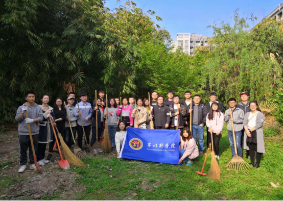 微风不燥,阳光正好。每个人脸上都洋溢着开心的笑容。待到夕阳渐斜影渐长时,所有人才整理好东西,“荷锄而归”。而原本有些凌乱的小树林则焕然一新,真正有了“后花园”的样子。