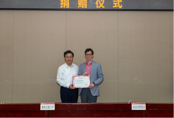 首先,星河时光(成都)文化传媒有限公司董事长白琳女士代表路军先生致辞。白琳女士在讲话中表示,今天的捐赠是一个美好的开始,华兴实业(中国)投资有限公司及星河时光成都文化传媒有限公司会不断支持西南交大卓越拔尖人才培养的教育事业,为学生们的创新、创业提供更强有力的支持。同时,也衷心希望西南交大师生们能够将自己的才华和科研成果、创新想法发挥在“三圣乡文旅项目”和田园成都的建设上。交大与公司、政府能够共商、共建、共享合作成果,充分发挥高校的智慧与科创优势,为“世界的成都、世界的三圣乡”建设奉献力量!
