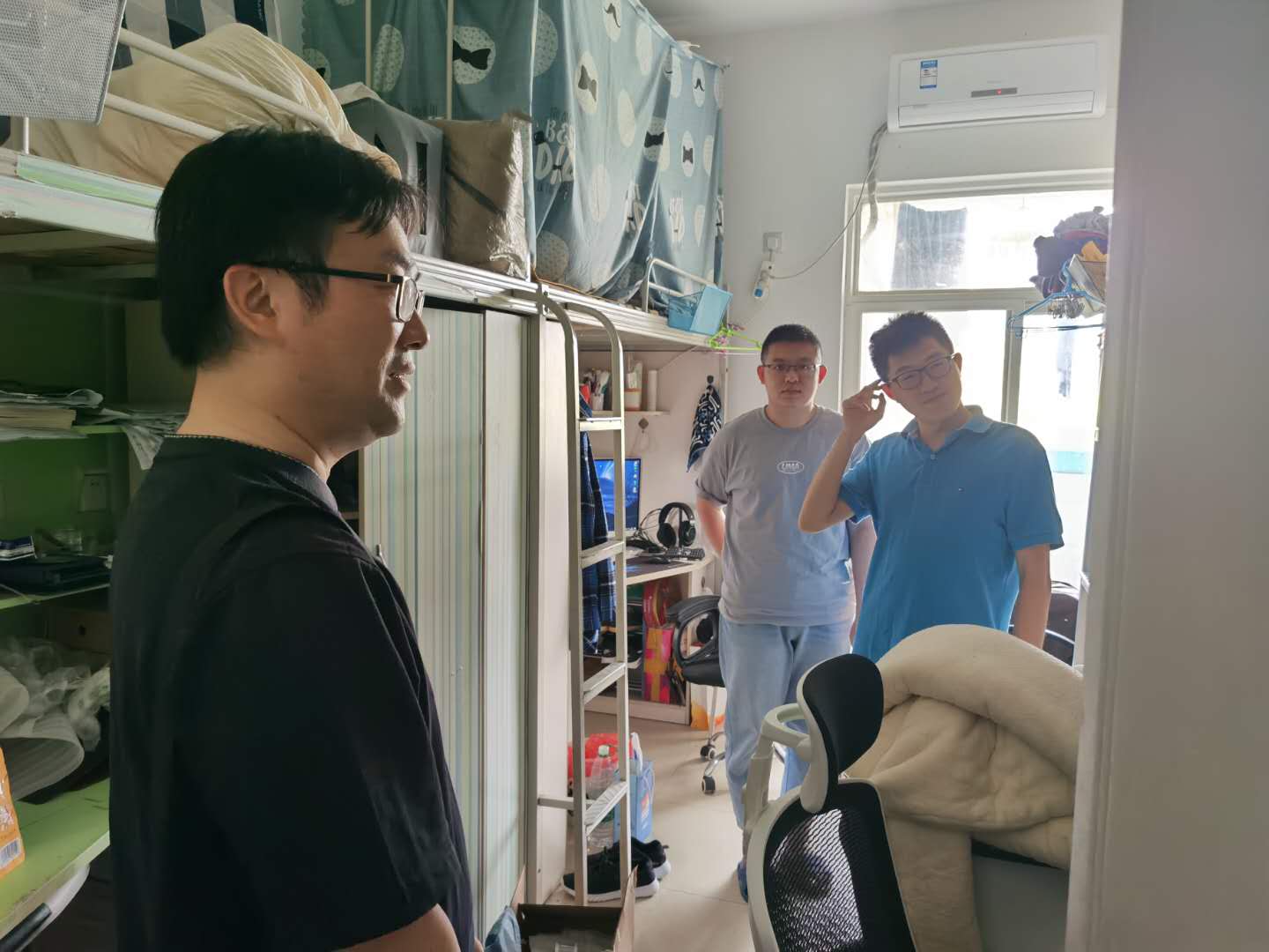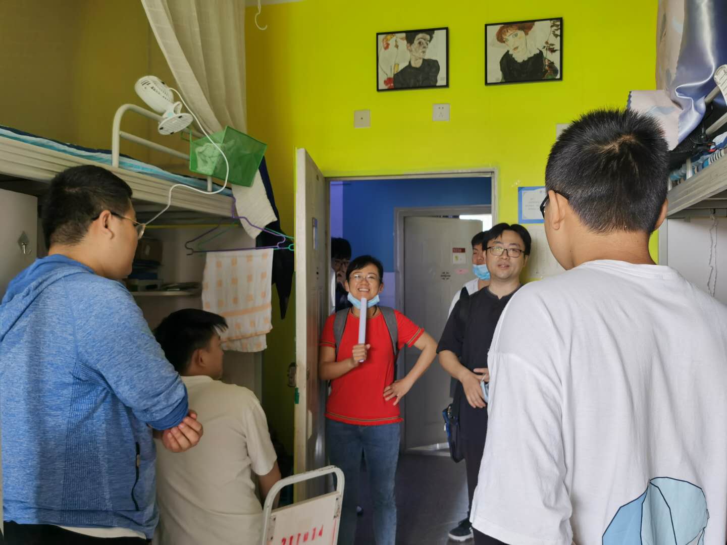 23日下午,学院党总支书记甘霖、党总支副书记王霞带领辅导员深入书院返校学生宿舍,走访看望返校学子。甘霖书记与同学们亲切交谈,了解同学们疫情期间的健康状况、心理状态、学习情况、生活状况和毕业进展等情况。他叮嘱大家,在此特殊时期要严格遵守学校疫情防控的相关规定,保持高度的防范意识,尽快转变心态,合理安排好自己的学业、就业和生活,以积极的心态迎接返校生活。