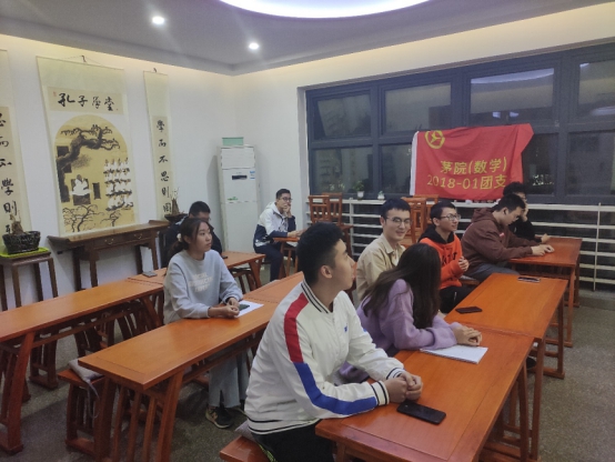 茅院(数学)2018-01团支部在2020年10月11日晚8:00于天佑斋21栋二楼勤学厅开展了开学第一次团课。全班14名团员到场12人,主持人团支书何一凡同学以演讲的形式开展了本次活动。本次活动总时长为1小时。加深了同学们对共青团,共产党的认识。