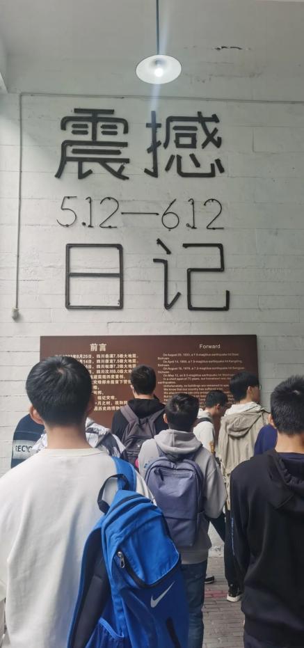 而在5.12抗震救灾纪念馆,长廊里堆砌着破败的砖石,脚下踩着灾难中破碎的书包、车牌、桌椅,时间又一点点拨回了12年前的那一场浩劫。灾难带走了一个个脆弱而美丽的生命,带不走的却是中华民族永恒的坚强意志。同学们的内心受到了极大的震撼,祖国的悲痛也深深印在了大家的心中。