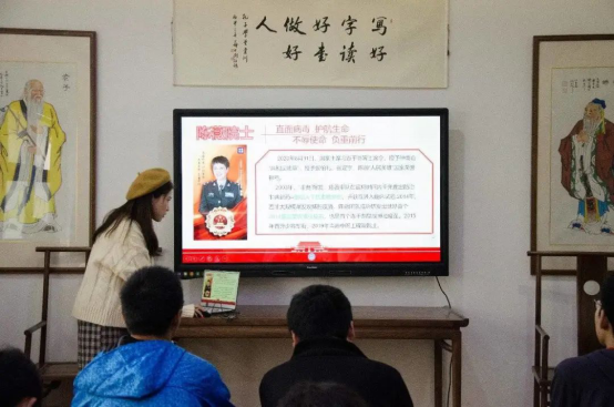 集体观看《2020年全国抗击新冠肺炎疫情表彰大会》,深入了解抗疫英雄们的光辉事迹,观看结束后交流观后感,其中王萍萍同学的发言具有代表性,抒发了自己对祖国的维护与对抗疫英雄的歌颂。随后,大家一起回顾表彰大会所表彰的每一位英雄的事迹,总结抗疫英雄们身上的共性与精神。