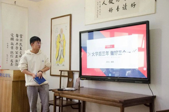2020年10月25日下午13时,在唐臣书院二楼,为热烈庆祝新中国成立71周年,贯彻落实“全团大抓基层”工作要求,加强对青年学生的思想政治引领,激发交大学子爱国荣校热情,2019级茅电班团支部组织全班同学开展“奋斗的我 最美的国” 主题团日活动,此次活动由茅班全体入党积极分子共同组织,由团支书朱宇华主讲。