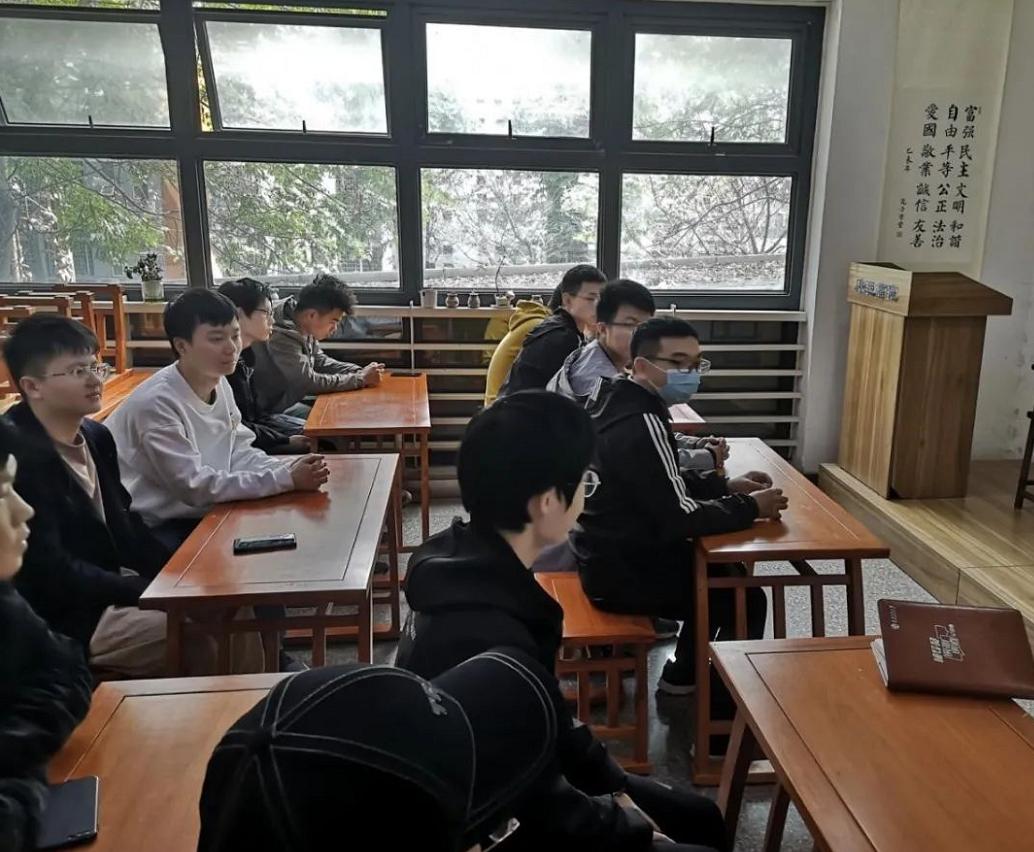 2020年12月18日13:30,茅院(力学)2018-01团支部在唐臣书院集中学习了本次党的十九届五中全会精神,团支书王伟豪主持了本次会议。