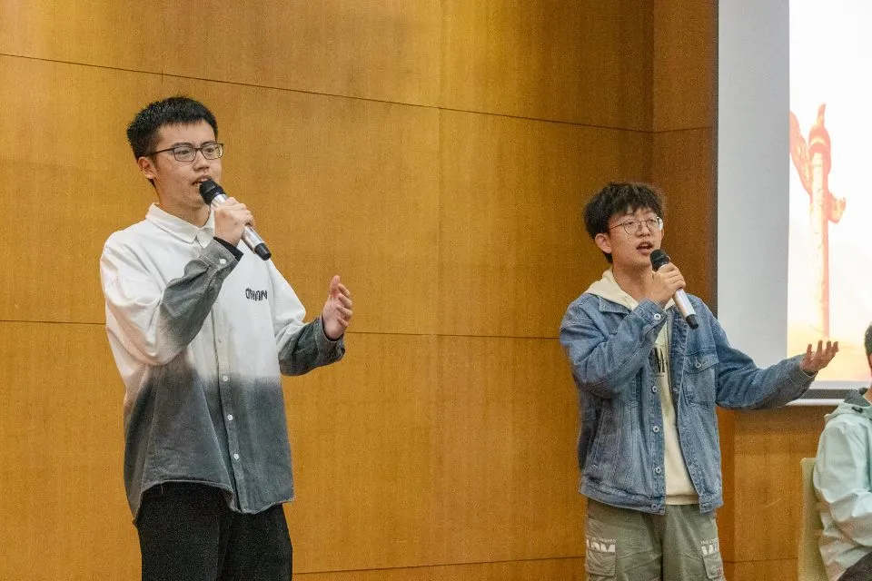 第一篇章的表演结束后,激动人心的互动环节党史知识问答将晚会推向了高潮,同学们踊跃参加,既学习了党史知识,也获得了相应的精美礼品。