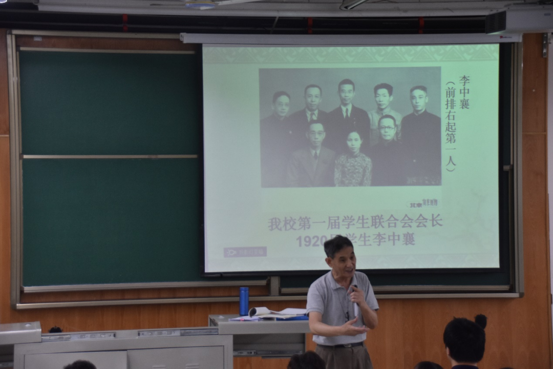 梁老师从五四运动中青年学生们的游行反抗开始引入,介绍了一批出自我校的有着杰出影响的优秀青年,强调了五四运动促进了马克思主义的发展传播,为后来的中国共产党的诞生作了准备,在思想上、组织干部上创造了条件。然后,梁老师又以驱俞斗争的胜利肯定了以李鸿斌为代表的我校学生的决心与勇敢。最后讲述了我校学生积极组织参与抗美援朝运动,与中国人民志愿军一起作战的经历故事,也正是这些优秀的学长学姐们,让我校125年的历史更加辉煌。