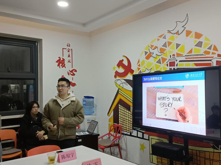 陈垠宇博士向我们介绍了他研究生期间的主要方向为电气化铁路电能质量评估与控制,向同学们讲述了他所在的课题组的大概情况。陈垠宇博士主要对论文结构,论文种类,写作顺序等一系列问题进行了系统全面的阐述,并纠正了我们对论文认知上的一些误区,比如要避免对专业基础概念的过多解释,书写论文更应该注重其逻辑性等。