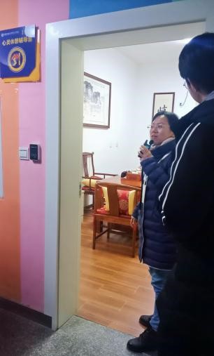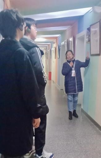 王霞老师首先向大家介绍了唐臣书院的文化,书院门前新绘制的篆书二十四节气;博学台、明德台两旁的“升华阁”“融合门”“奋斗桥”是建筑学院学生的优秀作品。进入书院大厅,王霞老师从青年茅以升铜像到唐臣文化驿站、研学室开始介绍,从“审美走廊”两侧令人轻松愉悦的彩色墙,墙面悬挂的百余幅嘉州画派的山水花鸟国画,再到经常放映爱国电影的“唐臣文化驿站”,还有舒缓压力的“心灵休憩辅导室”……,王霞老师亲切细致的讲述以及书院全面多元的设施让大家沉浸其中,又喜爱又好奇,一个个问题如雨后春笋般冒出来,都得到了满意的解答。
