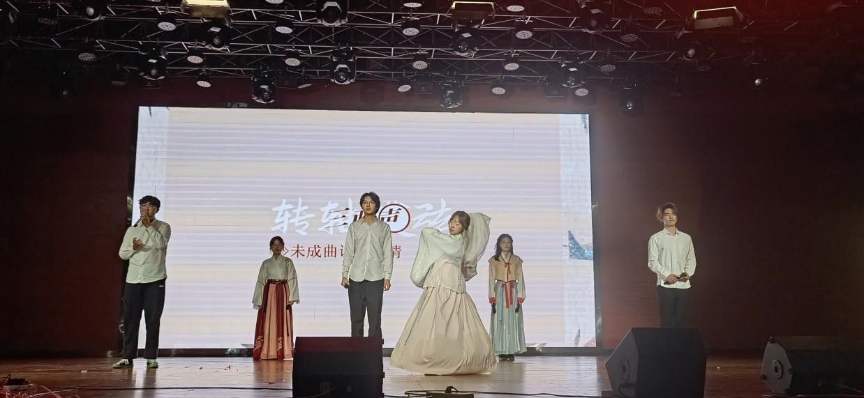 紧接着,由李羽彤、张誉航、李天意、杨廷晗、张靖晗、王冠雯六位同学带来的重唱歌曲《琵琶行》。这首歌的歌词取自最著名的中国古诗《琵琶行》,在改编成歌曲之后,用节奏欢快、旋律和谐的特点把古典音乐的精髓融入到了现代的复古音乐风格之中,给人带来新奇与乐趣。