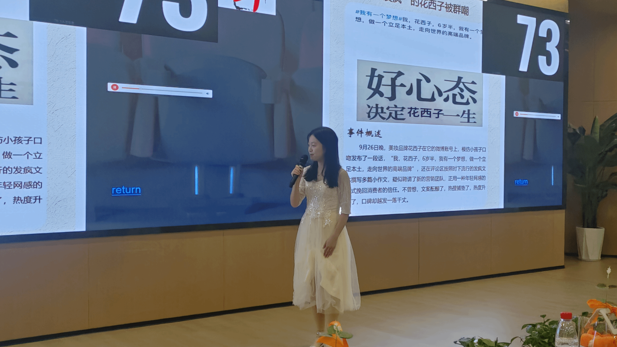 经过评委紧张的打分后,第一轮选拔赛成功选出了表现出色的前6位选手,他们将晋级到接下来的挑战——90秒主题主持。这一新颖而富有挑战性的环节要求每位选手在现场抽取主持主题,并即兴展开简洁而生动的主持表演。这个环节的设计突显了选手的主持能力、应变能力以及即兴表达的才华。每位选手将在抽取主题后,迅速思考并展示自己在短时间内处理主持任务的能力。这种紧迫感考验了选手们的灵活性和创造力,为观众呈现出更为真实和生动的主持风采。这一挑战性的90秒主题主持环节,深深挖掘了选手们的潜力,展示了他们在不同主题下的主持技巧。观众和评委在这一短暂但紧凑的表演中,看到了各位选手们的出色表现,为比赛注入了更多的激情和活力。