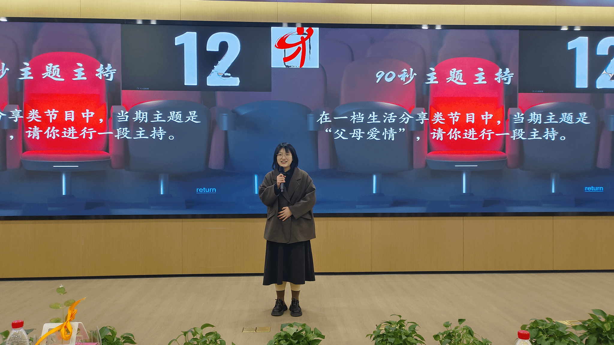 比赛进入了最后的挑战环节——即兴评述。在这一阶段,每位选手将现场抽取题目,然后面对题目内容进行90秒的现场评述。这个环节旨在考察选手们在压力下的表达能力,并展示他们的主持才能和知识储备。选手们抽到题目后,快速地理清思路,结合个人见解和知识储备,以清晰、简洁而又充满深度的语言表达,对题目内容进行现场评述。