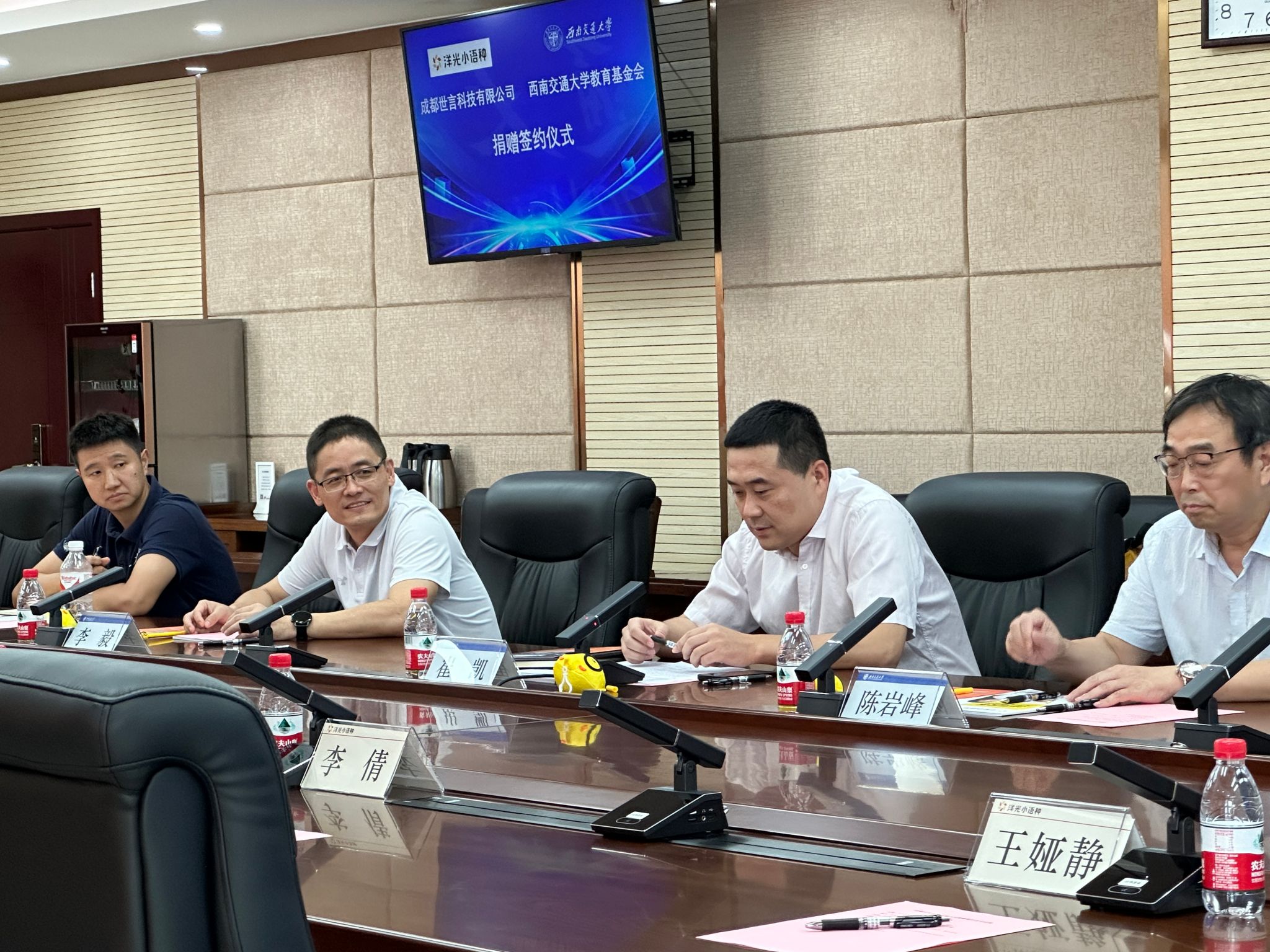 更是学校人才培养改革的先行区和示范区,为更好地营造育人环境,达成育人目标,学校高度重视学生的奖助和帮扶工作,建立了完善的学生资助体系,并积极吸纳社会捐赠以促进学生全面发展。成都世言科技有限公司捐赠的教育发展基金对我校师生发展具有重要意义。此次捐赠仪式不仅体现了成都世言科技有限公司对教育事业的坚定支持和强烈的社会责任感,也标志着校企协同育人机制的进一步深化,学校期待与贵公司建立长期合作育人关系,在人才培养、科研创新和社会服务进一步精准发力、精准赋能,推动高等教育事业高质量发展。
