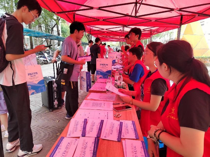 8月27日,在选拔考试之前,志愿者们身着统一服装,在校园重要路口设立指引站,为参加笔试和面试的同学提供详尽的考场指引服务,确保每位考生都能顺利到达考场,展现最佳状态。