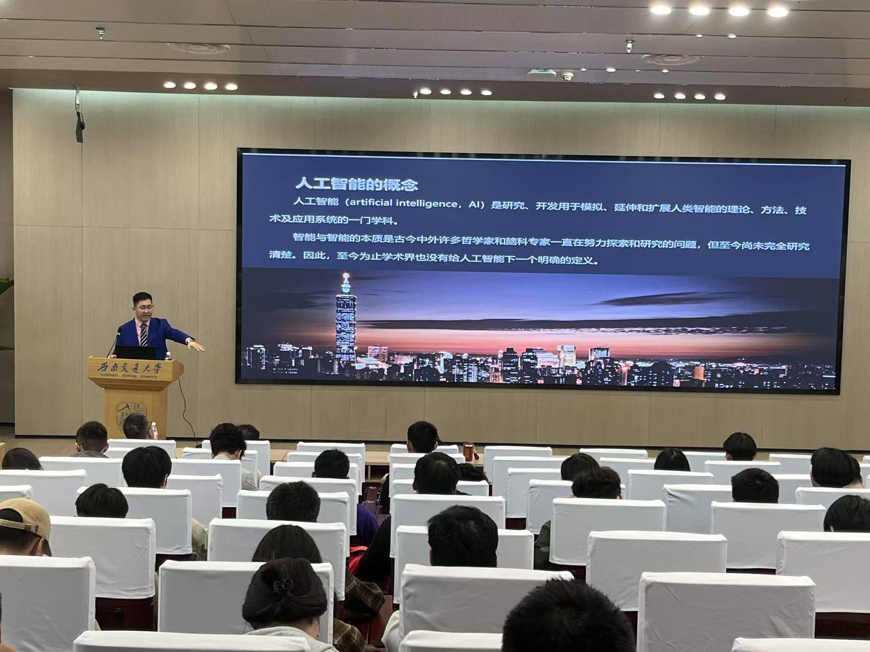 10月31日下午,中文成人网 与图书馆联合在犀浦校区图书馆二号报告厅举行【唐臣讲坛】第1期讲座主题为“AI通识——从ChatGPT到人工智能”。本次讲座邀请AI从业与咨询讲师、《创新思维—左圆右方》认证讲师孙源哲为主讲嘉宾。图书馆文化育人与特藏古籍部刘云、董若剑、宋姝、李颖,中文成人网 党总支副书记、学生工作组组长杨宏毅,辅导员康志娟参加讲座,讲座由图书馆副馆长夏显波主持,中文成人网 240余名学生参加讲座。