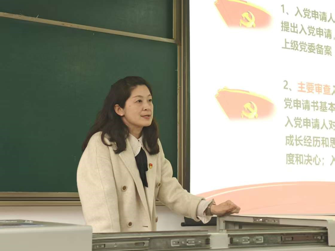 杨宏毅结合自身的工作经历和经典事例,对党员发展过程中的重点注意事项、如何规范填写表格等方面,给同学们进行了补充讲解。
