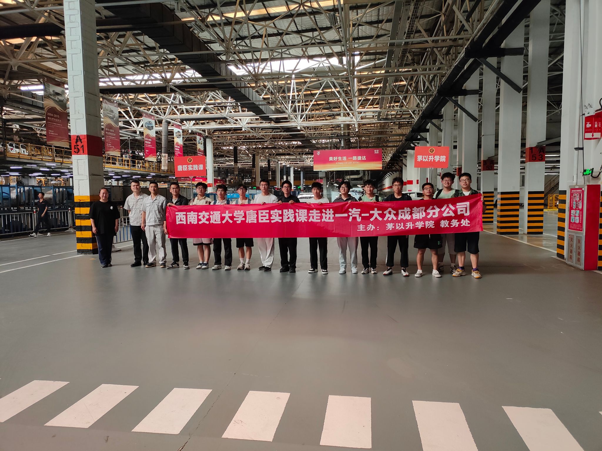 5月8日下午,唐臣实践课第六讲在一汽-大众成都分公司顺利开讲。本次唐臣实践课由中文成人网 、教务处主办,得到了一汽-大众成都分公司的大力支持。来自中文成人网 、智慧城市与交通学院共13名同学参加,大家共同深入感受现代化汽车工业的魅力。中文成人网 教学管理办公室主任王丹带队此次实践课。