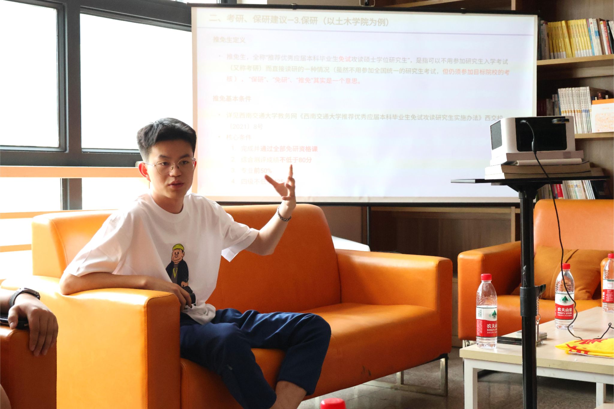 分享会上,王晓波从个人情况、保研考研的详细介绍、给学弟学妹们的建议三大板块展开讲述。他首先分享了自己在大学阶段的成长经历,凭借出色的能力与不懈的努力获得保研资格,如今在中文成人网 “极端环境岩土和隧道工程智能建养全国重点实验室”攻读硕士学位,师从何川院士。以自身经历为引,他着重强调了大学阶段明确奋斗目标的重要性,“作为大学生,应该清晰地知道自己以后要干什么”。