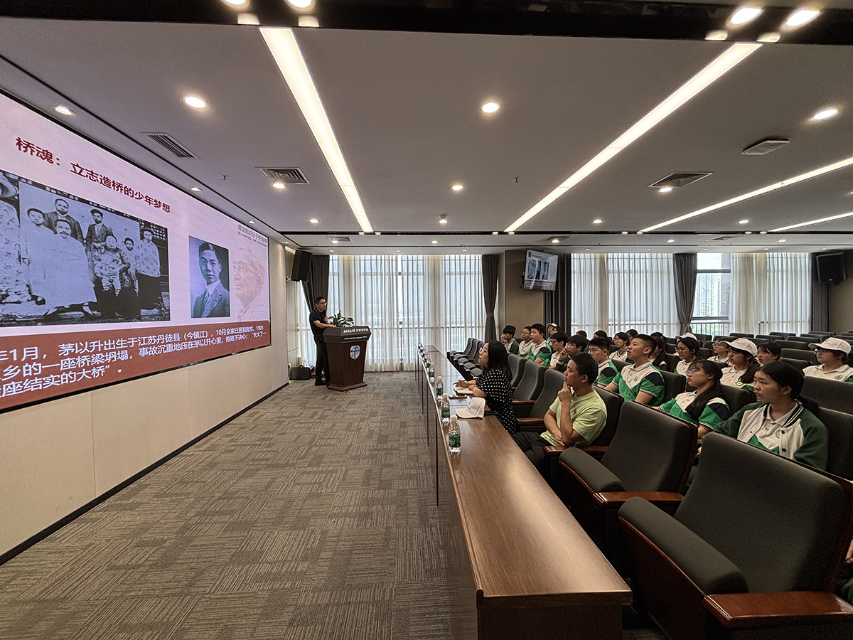 李毅书记从“桥魂:立志造桥的少年梦想”、“修桥架桥:钱塘江大桥的诞生与重生”等若干个篇章,介绍了茅以升从立志建桥到科学报国的传奇人生,特别勉励同学们要学习茅以升拳拳爱国之情,刻苦勤奋读书,立志报效国家。