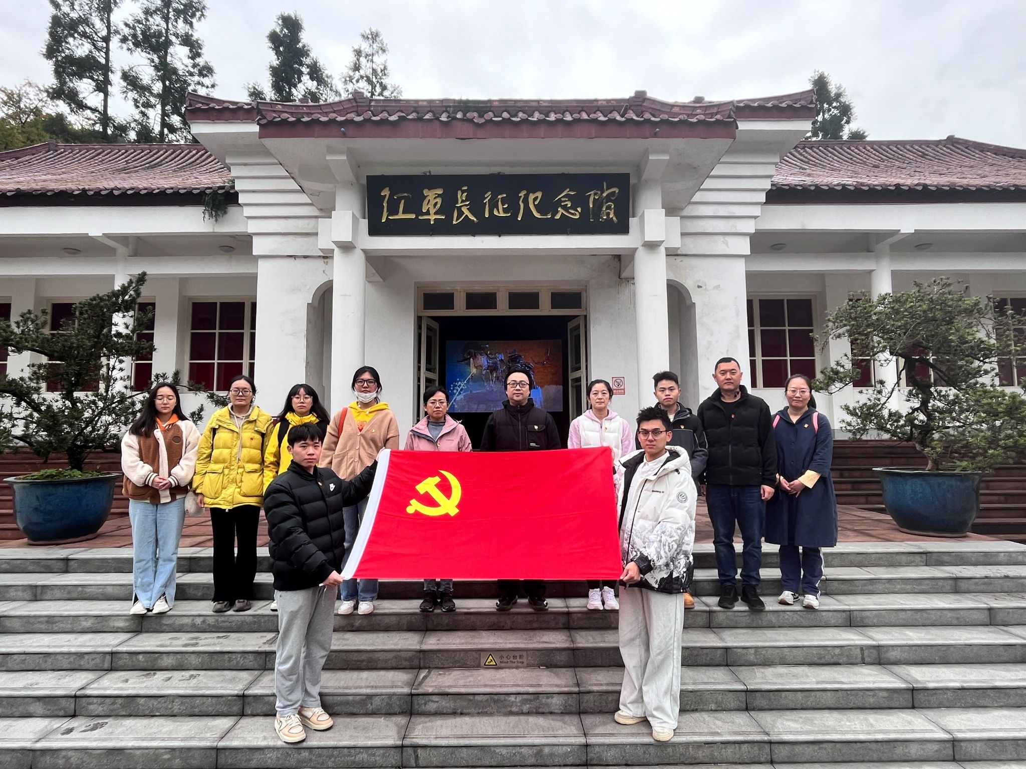 党总支书记甘霖、副书记王霞带领教工党支部全体同志和“双卓越”培养项目学生党员,吕绍龙、吴佳朔、王有鹏、吕笑晴、蒋紫依、王宇莹、袁婧雯同志共同参加了此次主题党日活动,师生党员共同缅怀红军长征的伟大历史,以实际行动传承红军长征精神。