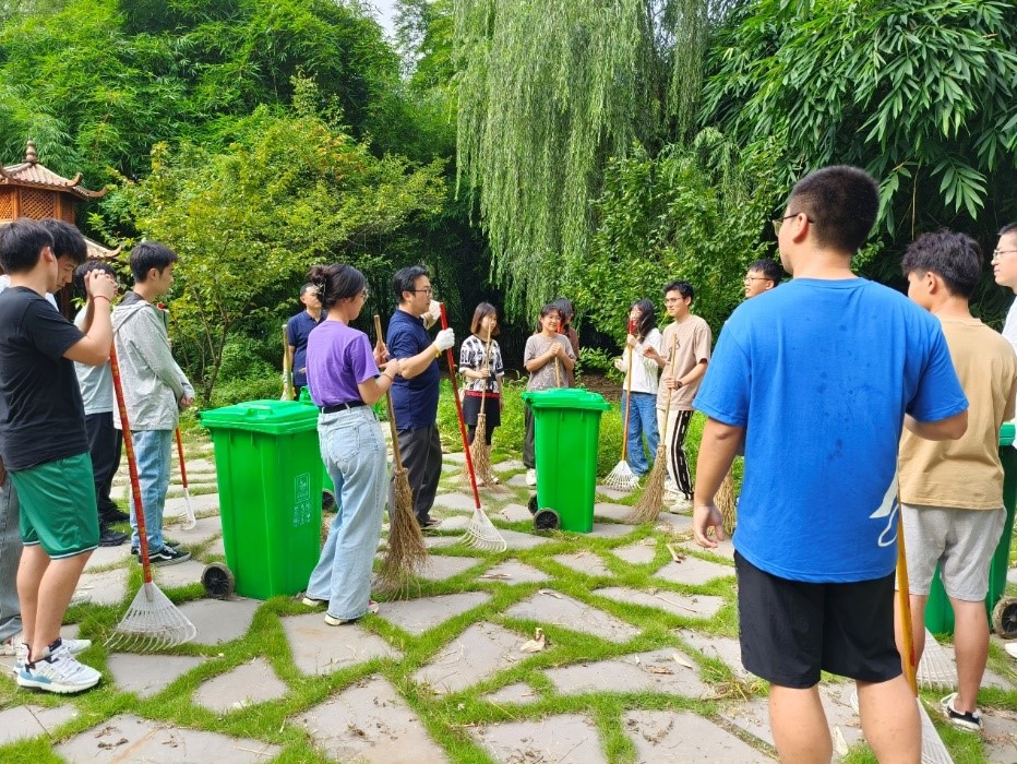 师生党员共同商议分组划责任区进行劳动,共分成5组,每组由一位教师党员带队,师生党员分工协作,共同为筑梦园“美容”。充分体现了唐臣书院“师生共同体”育人模式的优势,师生党员团结协作如一人,劳动育人做表率。