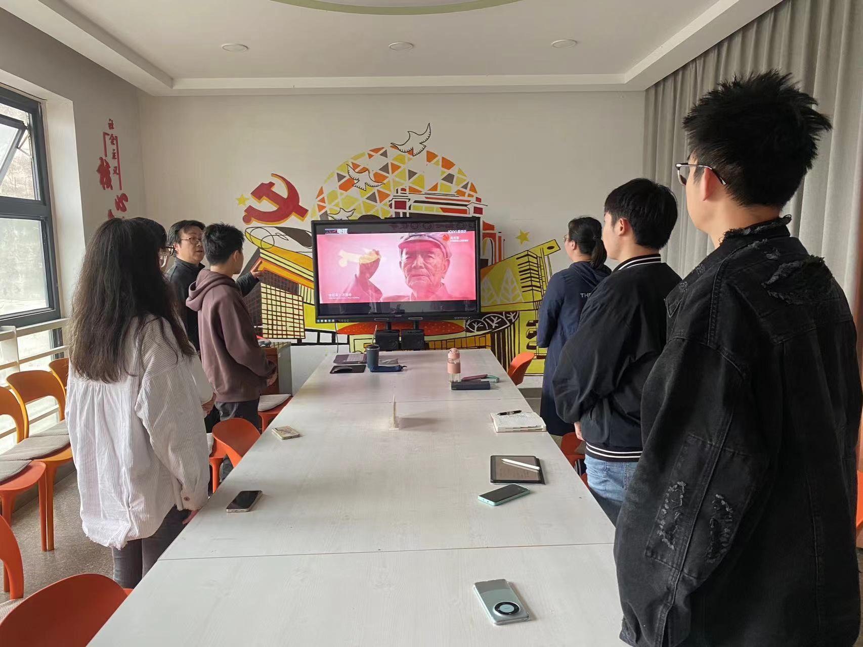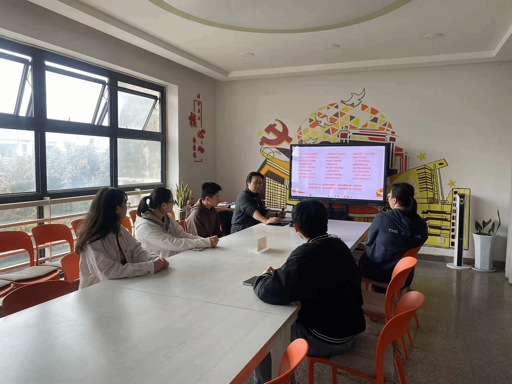 112日,下午14:00,中文成人网 “双卓越”培养项目学生党员在唐臣书院六楼“党员课堂”中聆听了一堂《红歌告诉我,中国共产党为什么能》专题音乐党课,本次音乐党课由中文成人网 党总支甘霖书记主讲,专职组织员孟涵老师、教务办公室主任王丹老师与吕绍龙、吴佳朔、王有鹏、袁静雯、蒋紫依五位“双卓越”培养项目学生党员参与了本次音乐党课。